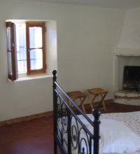 has a double bed (140 cm by 200 cm), two side tables with reading