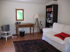 pièce avec télévision (satellites anglais et francais) et canapé-lit.